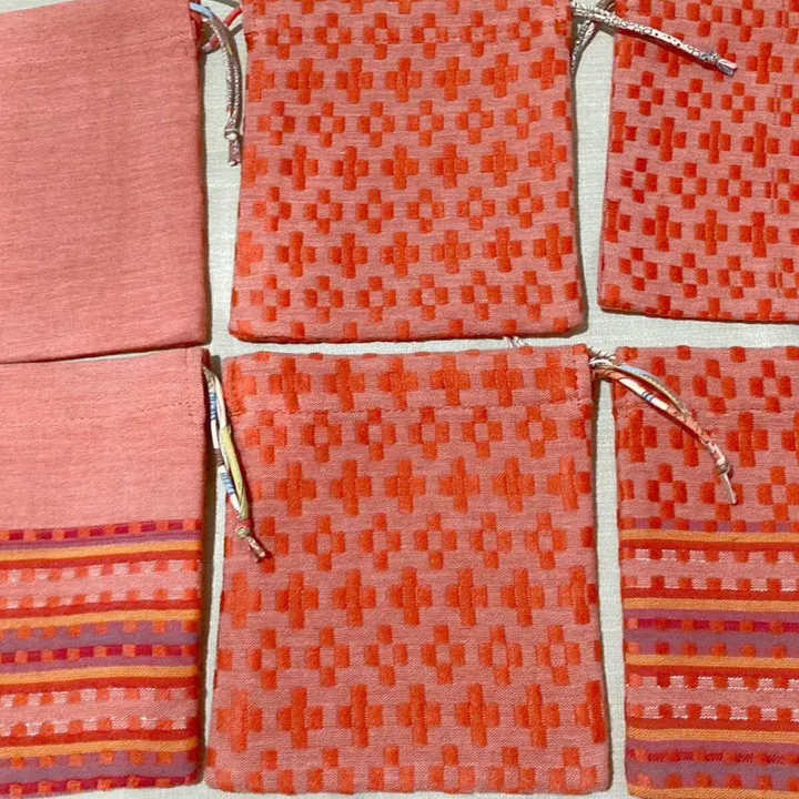 ミャンマーの彩り巾着|送料無料 モン族のロンジー|Orange