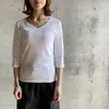 丸胴コットンフライス_Vネック7分袖 ホワイト 1-2サイズ