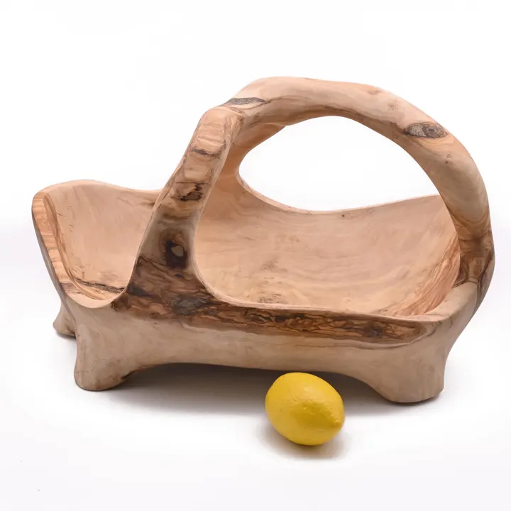 オリーブウッドを贅沢に削り出したバスケットです。 古くからヨーロッパや地中海沿岸地域で愛されてきたオリーブの木は、実用性と美しさを兼ね備えた高級木材。 油分が多く水はけがよいため、食器やキッチン用品に適しています。 また、数百年という長い年月をかけて生まれる密度の高い年輪やダイナミックな節、ユニークなマーブル模様は唯一無二であり、その華やかな見た目は食材や料理を美しく演出してくれます。 なお、オリーブウッドは乾燥により表面が色褪せますが、定期的に食用オイルを塗布すれば長くお使いいただけるエシカルな素材です。 【高品質なオリーブで知られるMéditerroir社の製品】 本製品を生産しているのは、チュニジア北東部の町、Menzel Kamelに拠点を構えるMéditerroir社。自社のオリーブ農園を保有し、オーガニック認証を受けた高品質なオリーブオイルをヨーロッパやアメリカなど、世界各国に輸出しています。 本製品は、そんなM'diterroir社が抱える熟練の職人たちが自社の高品質なオリーブの木を使って手作りしています。 【オリーブウッド製品の持続可能性】 チュニジアではオリーブの木の伐採に関するルールが厳格に定められており、基本的にオリーブの実をつけなくなった樹木しか伐採して使用することができません。 さらに、オリーブの木を1本伐採するごとに、新しい苗を1本植えなくてはならないという決まりもあります。 Méditerroir社のオリーブウッド製品は、オリーブ農園での役割を終えた樹木を使っているため、自然の恵みを無駄にしないエシカルな商品だと言えます。