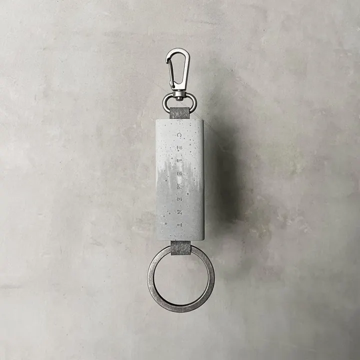 [KEY RING / キーリング]⁠ アクセサリーの異なる機能をつなぎ合わせたキーリングは、特殊なソフトセメントをベースに造形の概念を柔軟性によって両端へと拡張。一方の端はリング、もう一方の端はフック仕上げとし、さまざまな生活シーンに活用できるソフトセメントならではのユニークで相反する美学を表現しています。 カラーは、Classic, Black Marble, Soil Flowの3色からお選びいただけます。⁠ - Classic - 濃淡のあるセメント色のグラデーションは、特殊なソフトセメントの「刷毛塗り」によるもので、セメントのようなワイルドな質感を表現しています。グレーのベジタブルタンニンレザーに、アンティークニッケル調のキーリングとスナップフックの組み合わせです。 - Black Marble - 黒い大理石のような自然の風合いは、特殊なソフトセメントの「充填加工」によるものです。グレーのベジタブルタンニンレザーに、アンティークニッケル調のキーリングとスナップフックの組み合わせです。 - SOIL FLOW - 土質のように流動する自然な風合いは、特殊なソフトセメントの「充填加工」によるものです。生成りのベジタブルタンニングレザーに、アンティークブロンズ調のキーリングとスナップフックの組み合わせです。 CELEMENTは混合素材です。 見た目はハードですが、手に取ると柔らかい感触 - シリコンとセメントを特別なバランスで配合しています。(製品に使用するセメントは、台湾にある貯水池のメンテナンスで採取されたものを再利用しています) [CELEMENT素材の特性] タフな見た目 - 硬く荒く見えますが、クッション性がある 柔らかい感触 - ゴムやシリコンのように柔らかい 防水 - 撥水性もあり、水で簡単に汚れを落とせる 耐熱性 - 40°C~200°Cまでの熱に耐えられる [FEATURES] - 素材:CELEMENT (シリコン x セメント)、ベジタブル・タンニンレザー、金属 - パッケージ:リサイクルペーパー - 片方はキーホルダー、もう片方はスナップフックになっており、様々なシーンに対応します。 - 全てハンドメイドになるため、同じカラーでも写真と柄のパターンは少しずつ異なります。 [SPECS] - タテ: 3.2 cm - ヨコ: 12.5 cm - マチ: 1 cm - 重量: 25g - カラー展開 : CLASSIC | BLACK MARBLE | SOIL FLOW