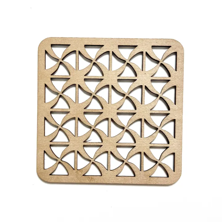 リトアニアで製作しているコースターです。 焼け跡の残らない技法を使用し、レーザーで切り抜いたデザインです。