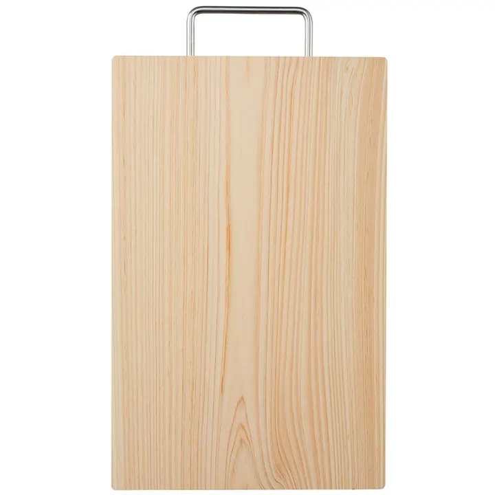 「四万十ひのき」を使用しています。材質自体に油性分を多く含んでいる「四万十ひのき製」のは、まな板は水切れ・水弾きが良く、乾き易いのが特長です。持ち易くしっかりとした取っ手が付いているので、まな板の上で切った食材を直接お皿やお鍋などに入れるときにとても便利なまな板です。