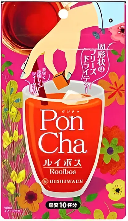PonCha(ポンと入れたらすぐ出来るお茶) ルイボス(世界のブランド ルイボスマークのルイボス使用) キューブ型のフリーズドライティーです。 コンパクトで軽く、持ち運びが楽です! 『エコでかんたん あたらしい』を体験してください。 かんたん便利、あたらしい。水やお湯が有れば、いつでもどこでも誰でも簡単に美味しいお茶が楽しめるフリーズドライティ—です。 軽くてゴミも出ないので、オフイスはもちろん、アウトドアやキャンプのお伴に最適です。 ルイボス茶葉世界ナンバーワンシェアのルイボスマークの高品質なルイボスを原料に使用しております。 <開発ストーリー> 近年、急須離れが進み、お茶に「手軽さ」が求められる時代になりました。コンビニやスーパーへ行けば、有名な市販茶がズラッと並び、出先でも簡単にお茶が飲める一方で、酸化防止剤の問題や、ペットボトルがエコではない等の問題があります。 そんな中、出来るだけ「エコ」で「手軽」にお茶が飲めるような商品は出来ないのかと考えたのがPonCha開発のきっかけであり、その具体的なアイデアが「フリーズドライ」という形でした。 菱和園では、全国から厳選して茶葉を仕入れ、丁寧に焙煎しており、“美味しいお茶”へのこだわりがあります。こうした課題に対し、毎日が挑戦・工夫の連続でした。そして、どうにかして世に出したいという思いで、3年という開発期間を経て、ついにフリーズドライティー「PonCha」が完成したのです。 私たち菱和園は創業50年を越えるお茶メーカーですが、伝統的な職人技を大切する一方で、時代の流れに合わせた柔軟な思考も大切と考えております。PonChaという全く新しい「フリーズドライティー」という市場が拡がり、お茶が好きな人たちがますます増えてくれたら、嬉しい限りです。ぜひ、ポンっと気軽にPonChaを味わってみて下さい!