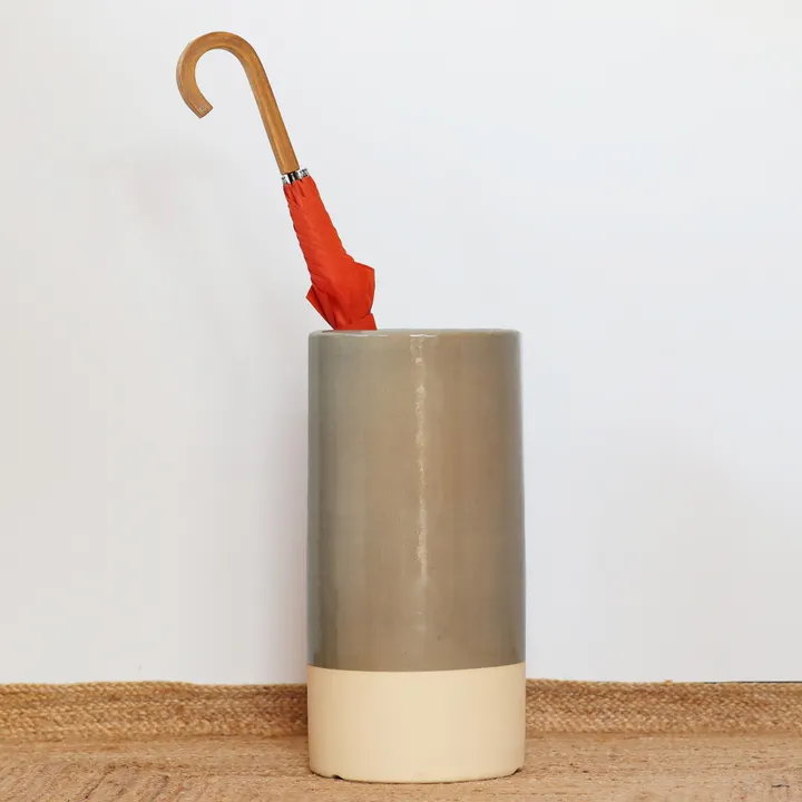 雨の日でも、そうでない日も、 玄関で迎えるインテリアとしてぴったりの デザイン性と機能性を兼ね備えた傘立てです。 下部は釉薬をかけず生地のままにすることで、 素地が傘についた水分を吸収・蒸発させ、 内部に水たまりを作りません。 いつでも清潔にお使いいただけます。