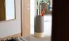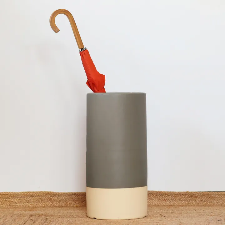 雨の日でも、そうでない日も、 玄関で迎えるインテリアとしてぴったりの デザイン性と機能性を兼ね備えた傘立てです。 下部は釉薬をかけず生地のままにすることで、 素地が傘についた水分を吸収・蒸発させ、 内部に水たまりを作りません。 いつでも清潔にお使いいただけます。