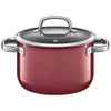 本体:ホーロー炉用鋼板、取っ手/ふたつまみ:ステンレス鋼、ふた:耐熱ガラス