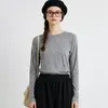 ドット柄長袖カットソーTシャツ・ラウンドネックトップスレイヤード定番レトロガーリー GRAY-FREE