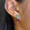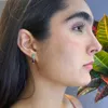 スクエアカットの天然石を爪で留め、もう一粒天然石を合わせたミニピアス 小さいながら技術の光るこだわりピアスです
