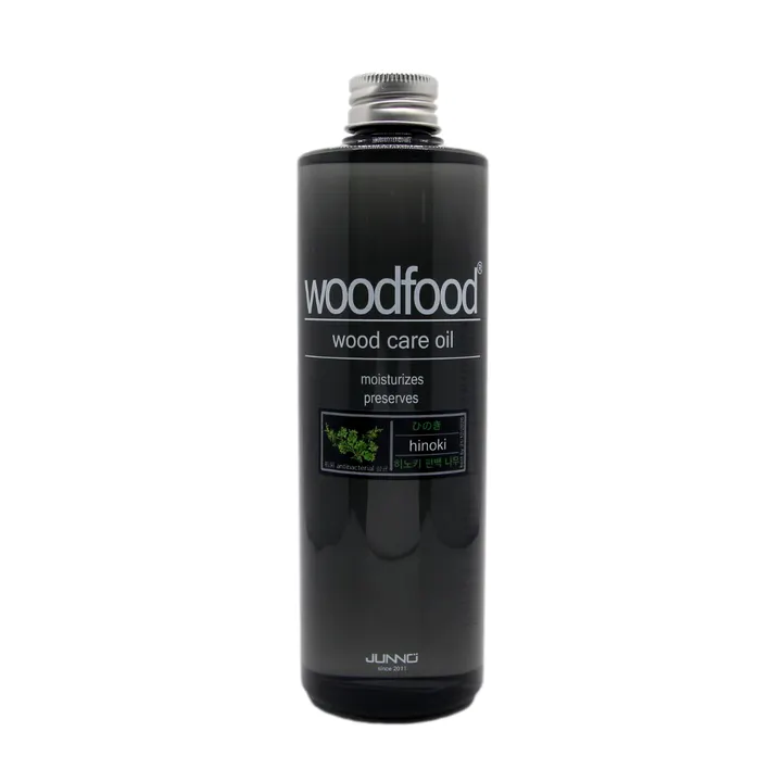 木と竹製品の完全なケア ヒノキの香り woodfoodオイルは、無塗装木製や竹製家具、床、まな板、食器、子供のおもちゃなどのメンテナンスやお手入れのために、丹念に配合されています。 木や竹に、保湿、栄養補給、乾燥予防、撥水効果や抗菌作用を与えると共に、耐久性を強化します。 ・ 水蒸気蒸留法で抽出されたヒノキオイルを配合されています。 ・ 天然成分から製造されています。 ・ 無垢木製や竹製家具をはじめとする、床、壁パネル、まな板、食器、子供のおもちゃまでの木工製品全般に使用できます。 ・ この最高品質万能的なオイルは、べたつかず、簡単に塗布することができます。 ・ 原産国:日本製 (福岡)