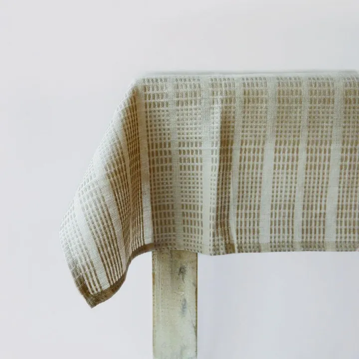 生地に織りのラインを入れることで立体感のある仕上がりに。 コットンの他にリネンが入っているので、夏らしい涼しげな印象に。 軽やかな肌触りのテーブルクロスです。 【キッチン】【ファブリック】【カフェ/喫茶店】【D】