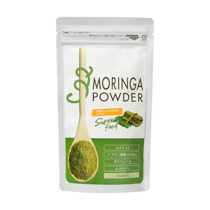 γ‐アミノ乳酸(GABA)、ポリフェノールなどを含み、人気継続中のモリンガの葉のパウダーです。 ミラクルツリー、生命の木とも呼ばれます。 有機モリンガを細かくすりつぶした100%モリンガパウダーで、緑茶にも似た優しい風味が特徴。 飲み物だけでなく、食事やスイーツへの活用も便利です。 <おすすめレシピ> ●モリンガとスピルリナのディープグリーンスムージー(写真3枚目)  材料(1人分) ・有機モリンガ100%パウダー・・・大さじ1 ・有機スピルリナ100%パウダー・・・小さじ1 ・りんご・・・1/2個 ・レモングラス(フレッシュ)・・・約5?p 1本 ・ココナッツウォーター(お水でも可)・・・150ml 作り方 ・りんごは種の部分を除いて、適当な大きさに切ります。 ・全ての材料をミキサーに入れてかけ、グラスに注いで完了です。 ティーバッグのハーブティー 有機モリンガもご用意しております。 ・有機モリンガ(10・30ケ入り) 受注生産品は出荷まで7営業日程度いただいております。