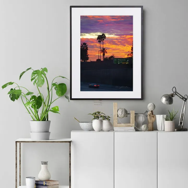 【現代アートポスター】ロサンゼルス LA エルセグンド 夕焼け空 街並み 高速道路 風景写真 PHOTO A3(M) フレームセット:黒 40.0×51.5cm