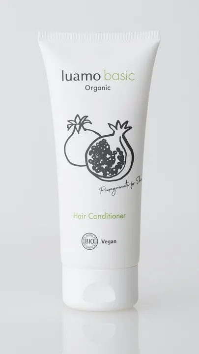 【ルアモの姉妹ブランドです】 ロングヘアや細く絡まりやすい子供の髪もサラサラ、つややかに仕上げ、枝毛、切れ毛を防ぎます。ザクロのエキスとブロッコリ―の種のオイルを配合し櫛どおりもなめらかに。乾燥しやすい頭皮にもお使いいただけます。 <レモン様のヴァーベナの香り> ○キー成分:ザクロ種子エキス オーガニックザクロの種子を乾燥させ、超臨界二酸化炭素抽出法でエキスを抽出しています。ザクロの種子エキスは髪のケアをはじめ、乾燥、敏感に傾きがちな頭皮のケアに最適です。 ================ すべてのかたに ハーブの香るオーガニックケア製品 ルアモ ベーシックは世界的なナチュラル・オーガニックコスメの第三者認証NATRUE を取得した「確かな品質、使い心地、ナチュラルな香りを家族みんなの毎日の生活に!」と2014年に誕生しました。 爽やかなヴァーベナの香りのボディケア計4 品( シャンプー、コンディショナー、ハンドクリーム、スキンクリーム)とフルーティー・シトラスとローズの香るフェイシャルスキンケア計3 品(クレンジングジェル、フェイシャルトナー、モイスチャライザー)の全7 製品です。 1999年以来ヨーロッパの認証オーガニック製品をご紹介してきたロゴナジャパンが自信を持ってお送りする自社ブランドで、光ダメージからお肌を守るUVケア製品とオーガニックメイクブランド「ルアモ」の姉妹ブランドです。 ○植物成分 植物の力を信じ、オーガニックのハーブエキス、オイルをふんだんに配合。配合している植物由来成分は出来るだけ化学的処理を行わないオーガニッククオリティのものを使用しています。 ○お肌へのやさしさ 年齢・性別に関係なくみんなが気持ちよく使えるように、ナチュラル・オーガニックコスメの基準をクリアしたお肌に優しい洗浄成分や植物由来の保湿成分を贅沢に使い、パラベンなどの防腐剤は使用していません。 ○NATRUE( ネイトゥル―)認証 化粧品と食品とではナチュラル・オーガニックの基準が異なります。ネイトゥル―は化粧品に特化した認証。化粧品の各カテゴリー別(例:シャンプー、クリームなど)に厳しい基準を設けています。 【ベーシックのお約束】 ● 石油由来成分は使用しません ● 石油由来の防腐剤は使用しません ● 合成香料は使用しません ● ナチュラル・オーガニックコスメ認証、NATRUE 取得* ● ヴィーガン(vegan/ 動物性原料不使用)製品 ● 高品質なオーガニック原料を使用しています * ベーシック ヘアコンディショナーを除く 製品はISO9001 取得、 化粧品の国際的な製造基準GMP 準拠、サステナブル認定* を受けた工場で製造しています ◆ バルク容器の再利用に努めています ◆ 建物と工場内は井戸水を循環させて冷房・冷却しています ◆ エコロジカルな照明を利用 ◆ 可能な限り再利用、再利用できないものはリサイクルしています *1991 年発足のドイツ・サステナビリティ&エコノミー研究所による認定。幅広い分野で高い専門性を持った40 人の専門家が企業の責任・製品の品質・持続可能なありかたを問い、共に開発し、文書化しており、世界中で200 以上の業界、 16,000 の企業に対して認証を発行しており、その証明書と認証ラベルは世界的にもトップレベルです。