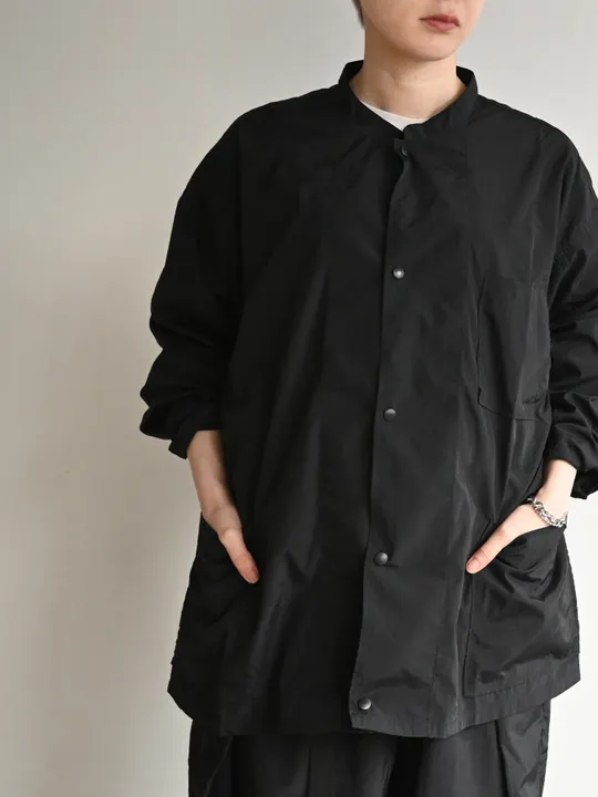 ♦無駄を削ぎ落したミニマルデザインのブラックシャツ♦ SIZE:M/L マットな質感の素材を使用し落ち着いた表情に仕上げた一着。 すっきりとしたシルエットとシンプルなフロントデザインで、 カジュアルにもモードにも合わせやすいアイテムです。 フロントはスナップボタン仕様で着脱がスムーズ。 程よくゆとりのある身幅と短すぎず長すぎない丈感で、 レイヤードもしやすく、季節の変わり目にも活躍します。 装飾を抑えたデザインだからこそ、 素材感とシルエットの美しさが際立つ一着。 デイリーからきれいめスタイルまで幅広く対応します。 ポケッタブルで収納できるポーチ付き。 着用時も内側にポーチを引っ掛ける部分があり、 サッと収納でき便利です。 <モデル着用> Men’s 身長183cm Mサイズ Ladies 身長163cm Mサイズ ~撥水機能素材~ 撥水加工を施した生地を使用しています。 水滴や軽い雨を弾くため、天候の変化にも安心して着用いただけます。 [快適性]通気性を保ちながら水をはじくため、ムレにくく快適な着心地。 [機能性]アウトドアやタウンユースなど幅広いシーンで活躍。 撥水加工により汚れが付きにくく、お手入れも簡単。 ※完全防水ではありませんので、長時間の雨天や強い水圧下での使用にはご注意ください。 ~耐光素材~ 日光や照明による退色・劣化を軽減し、美しい色合いや質感を長く保つことができます。 紫外線などの光に強く、カラーを維持。 [耐久性]長期間の使用でも風合いを損ないにくい。 屋外や日当たりの良い環境でも安心してご使用可能です。 ※ご使用環境や経年によっては多少の色変化が生じる場合があります。 ~汗堅牢度~  汗に含まれる成分による色落ちや色移りを抑える品質確認を行っており、 日常の着用シーンでも安心してご使用いただけます。 [色落ち防止]汗による変色や退色を軽減。 [衣類保護]他の衣類や肌への色移りを抑制。 [品質保証]日本工業規格に準拠した試験で確認済み。 ※ご使用状況や経年により、多少の色変化が生じる場合があります。 【NoiR 販売価格について】 弊社設定上代(税込価格)での販売のご協力をお願いいたします。 また、商品に対してのクーポン等はご遠慮いただいております。 ショップ全体でのクーポン等は問題ございません。 ご理解・ご了承のほどお願い致します。
