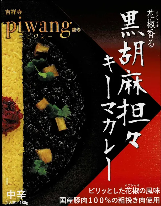 東京、吉祥寺のカレー店。定番のチキンカレーと日替わりカレーで作られる2種盛りカレーが看板メニュー。数ある日替わりカレーの中でも断トツ人気の「黒胡麻担々キーマカレー」をレトルトで再現しました。花椒の刺激とスパイスのハーモニーをお楽しみください。 内容量:180g 定価 ¥648-(税込)/1個 ■原材料名 豚肉(国産)、玉ねぎ、トマト・ジュースづけ、食用調合油、ココナッツミルク、黒すりごま、砂糖、甜麺醤、みそ、食塩、しょうゆ、コリアンダー、ターメリック、クミン、魚醤(魚介類)、オイスターソース、クローブ、ブラックペッパー、花椒、ローレル、唐辛子、カイエンペッパー/増粘剤(加工でんぷん)、調味料(アミノ酸等)、カラメル色素、酸味料、(一部に小麦・ごま・大豆・豚肉・魚醤(魚介類)を含む) ■栄養成分表示(1袋 180gあたり) エネルギー 401kcal たんぱく質 15.2g 脂質 30.8g 炭水化物 14.1g 食塩相当量 2.4g ※推定値 監修 piwang(ピワン) 東京 吉祥寺の駅前ハモニカ横町の人気カレー店 レトルトカレーは、調理不要で長期間保存できるため、災害時の非常食として適しています。温めるだけでそのまま食べられるため、備蓄しながら日常でも活用でき、古いものから順に消費して新しいものを補充する「ローリングストック法」にも便利です。