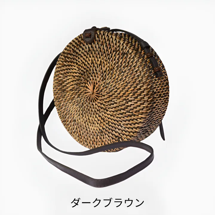 ラタンラウンドバッグ ダークブラウン