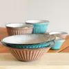 トルコブルー、ワインレッドともに華やかな色ですが、派手ではなくむしろ落ち着いた印象です。そして土ものの持つ、ほっこりと優しい雰囲気がよく表現されています。絶妙なバランスです。器はいずれも使いやすい形状で、用途を絞らず多岐にご利用いただけます。