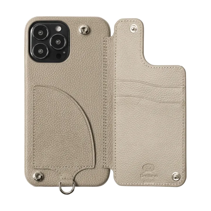 2023年9月より弊ブランドはDemiurvo(デミウルーボ)改めDEMIU(デミュウ)に改名いたします。 それに伴い、DEMIUの名を配したブランドネーム・ロゴが採用されます。 一部商品に関しては、Demiurvoとして引き続き販売いたしますが順次モデルチェンジ予定です。 何卒、ご理解のほど宜しくお願い致します。 カラー豊富なお財布機能つきiPhoneケースPOCHE(ポシェ)。 選び抜かれた上質なフランス産牛革を使用したiPhoneケース。 本革を使用しているため、ひとつひとつとして同じ革がないところも魅力。 思わず目を惹かれるカラーと質感で存在感抜群のアイテムです。 右扉の内側に2段のカードスリットと隠しポケット、左側に収納ポケット、 外側に小銭入れを施しお財布としての機能を備えた便利なアイテム。 蓋をささえにして横置きできるのでYouTubeやテレビ会議にも便利。 ショルダーなどを付けられるリングが付いているので、別売りのショルダーストラップとのセットや色違いのストラップでコーディネイトするのもおすすめです。※iPhone12 miniおよび13miniの背面のカード入れに関してですが左側(ケース装着側)の仕切り部分と、右側の裏ポケットにはカードはお入れいただけません。右側のカード入れにはカード段が1つの仕様となります。ご注意ください。 ※ストラップは別売りです。 ー仕様ー・素材本体:牛革ケース部分:ポリカーボネート金具:ニッケル・重量約65g