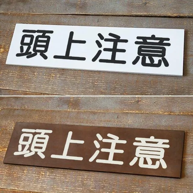 木製プレート 頭上注意 幅43cm ホワイト