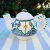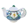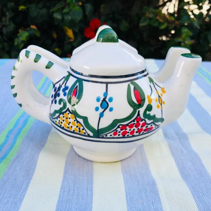 サイズ 約 横16cm 奥行10.5cm 高さ12cm 400年以上歴史のあるチュニジア伝統の絵付け陶器の街ナブールから、地中海の風をお届けします。 ポットの形をした可愛いデザイン。ナプキンを立てて飾っていただくと食卓を華やかに演出してくれます。 またカードやメモ帳立てに使うことも出来ます。 *「ナブール」は観光客だけでなく、チュニジア人でも陶器を買いに行くときはここ、というほど陶器の街として知られています。 この町の工場で職人が1点1点鮮やかな手つきでロクロを回し、皿に絵付けをしている女性の手つきの見事さに感嘆します。 中心から放射線状に広がる模様は、ほとんどの工房がこの柄で絵付けするほどオーソドックスです。 ※日本製と較べ、比較的焼成温度が低いので、欠けたり割れたりしやすいものです。お取扱いには十分に気をつけてください。 ひとつひとつ手作業で成形・絵付け・仕上げの工程を行いますので、製品により絵付けの色むら・ズレ・にじみ・形にばらつきがありますが味はあります。 またお使いになっているパソコンやブラウザによって商品の色合いが多少違って見える事をご了承下さい。