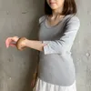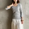 【日本製】丸胴コットンフライス_スクープネック7分袖 ライトグレー 2-3サイズ