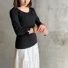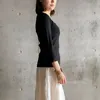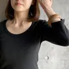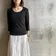 【日本製】丸胴コットンフライス_スクープネック7分袖 ブラック 1-2サイズ