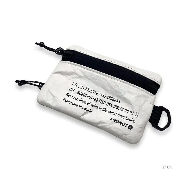 高密度ポリエチレン繊維不織布素材のWジップパースです。 ていうか、高密度ポリエチレン繊維不織布素材ってなんなの?って感じですよね。 主な特徴は、軽くて、水に強く、強度があって、ムレにくいこと。 最初は紙のような見た目と質感ですが、一度手でほぐすとシワができ柔らかくなり本来の質感になります。 軽くて持ち運びがしやすく丈夫なので、エコバッグや旅行ポーチなどにも最適な素材なんです。 W_ZIP PURSE自体は、オモテ裏の両面がジップポケットになっているので、片側はコインポケット・反対側にカードとお札(二つ折り) を入れてください。 ちょっとそこまで、にピッタリなミニウォレットです。 Product Description A double-zip purse made from high-density polyethylene nonwoven fabric. Sounds technical, but it simply means the material is lightweight, water-resistant, durable, and breathable. It starts with a paper-like look and feel, then softens and develops natural wrinkles once you break it in by hand. Because it’s light, tough, and easy to carry, this fabric is commonly used for eco bags and travel pouches—making it a perfect fit for everyday accessories. The W ZIP PURSE features zip pockets on both sides: use one side for coins, and the other for cards and bills folded in half. A compact, practical mini wallet, ideal for quick outings.