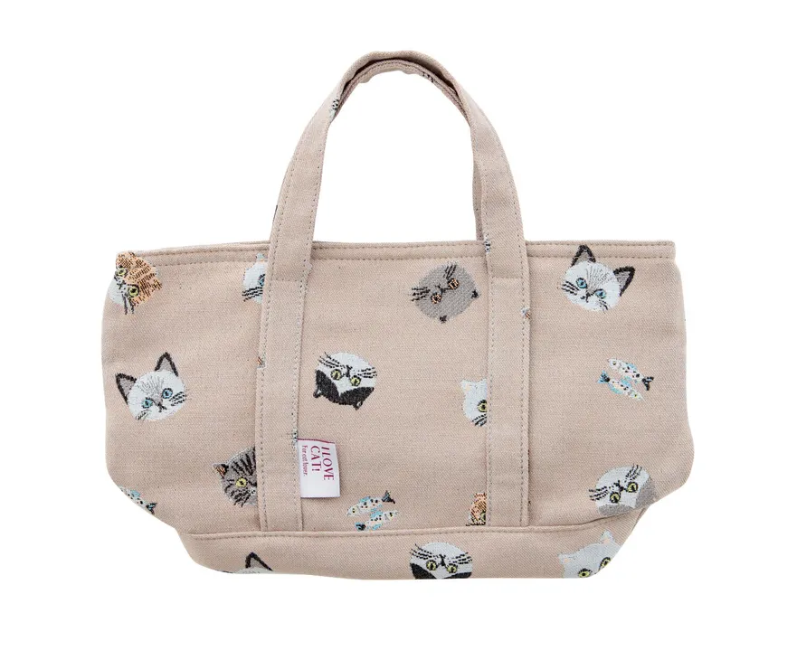 「ネコ好きさん、しゅうごーう!」 ネコ好きさんへ贈る、ネコまみれのシリーズが登場! ネコを愛してやまない方に、おすすめしない訳にはいきません。ネコ愛溢れるアイテムたちです。 普段使いには充分な容量のバッグ。 もちろん、ランチバッグとしても◎ ペールトーンの差し色がポイントの、ネコ好きをアピールできちゃうトートです。 マグネットホックでバッグ中心を留めるタイプで、オープンポケットが2つ、内側についています。 他のアイテムとセットにしてネコ好きさんへの贈り物にいかがですか?