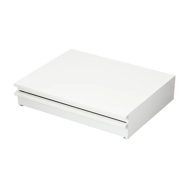 ●キッチンに新たな収納スペースを作り出す『キッチン家電ラック スライドテーブル&引出し付き』。 電子レンジやトースター、炊飯器などの下に設置することで、デッドスペースだったところが新たな収納に生まれ変わります。 上の段はスライドテーブルになっており、食器や調理する前の食材、電子レンジなどの家電から取り出した食材を一時置きするのに便利。 下の段は引出しタイプの収納になっているので、キッチンツールやミトン、サランラップなどの小物や、レシピブックなどを保管しておくのもおすすめです。 ●インテリアにも馴染みやすいシンプルなホワイトカラー。 ザラザラな表面処理が上品な雰囲気を演出してくれます。 ●調理後に一時置き出来るスライドテーブル付き コップやお皿などを一時置きしたり、お湯を注ぎたいときも台として使えます。 ●小物を収納出来る引き出し付き ラップ・アルミホイル・ミトンなど、すぐに取り出して使いやすい引き出し付き。 デッドスペースを有効活用します。 ●スムーズに開閉出来るスライドレール仕様 スライドテーブルと引き出しには「スライドレール」が付いているので、スムーズに開閉出来ます。 ●指を引っ掛けやすい取っ手形状 指先を引っ掛けて、手前に引き出しやすい取っ手形状。