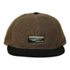ボア生地を配色で組み合わせ。ツバはコーデュロイ素材のアンパイアキャップ。フロントにはアウトドアモチーフの刺繍ワッペン。ユニセでオススメしやすい淡いカラーリングの帽子です。
