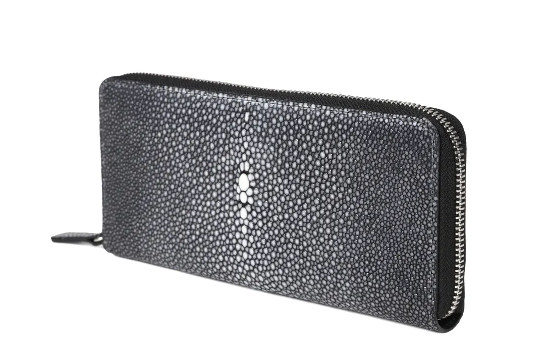 風琴マチラウンドロングウォレット【スティングレイレザー】 ブラック ※内装はブラックになります