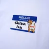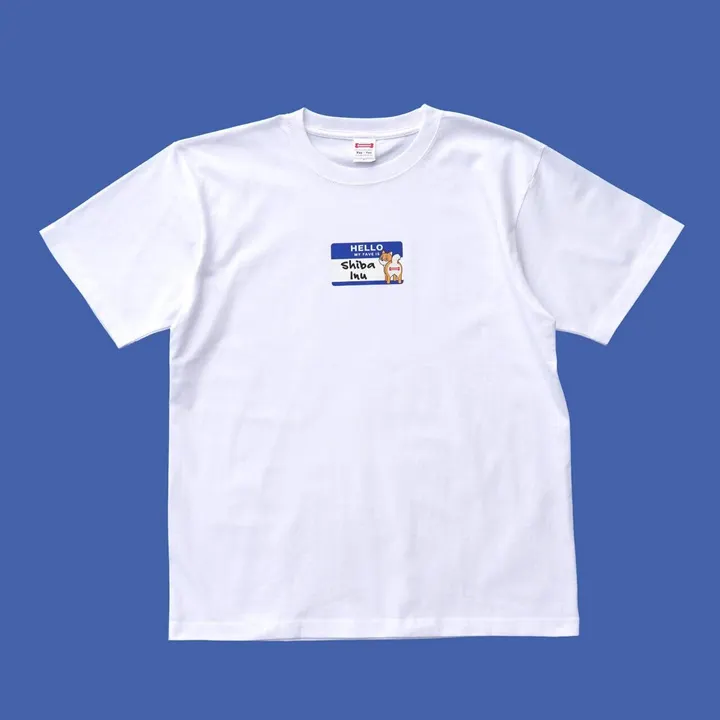 "HELLO MY FAVE IS Shiba Inu" 「こんにちは。私の推しは柴犬です。」 デザインの元になっているのは海外のパーティーなどで名刺の代わりに使われることが多い、"HELLO MY NAME IS"ステッカー。 はじめましての挨拶に使われるステッカーをデザインに使うことで、Tシャツを着ることで自分のお気に入りのワンちゃんを伝えられればいいなと思い作ったTシャツです。 Tシャツのボディーは、100%コットンで6.2ozの着心地の良い厚めの素材を使用。 首もとの縫製には、ステッチを2本施すことによって首もとの伸びを抑えることができるダブルステッチ縫製を採用。 長い間、着心地良く着ていただける素材を選びました。 このTシャツを着て【柴犬】好きをアピールしましょう! サイズ展開- S/M/L/XL 身丈- 63/68/72/75 身幅- 47/52/55/60 肩幅- 42/46/50/55 袖丈- 18/22/22/23 素材- 綿100% Printed in JAPAN Illusted by hoppe https://www.instagram.com/hoppe_illust/