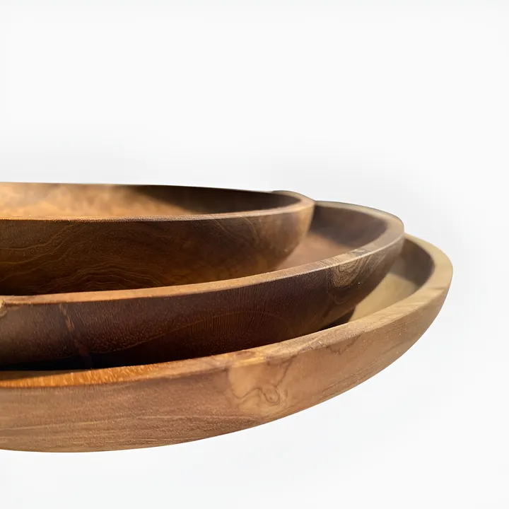 【コーティング剤不使用!ハンドメイドの木製品です】 いわゆるチーク。インドネシアではジャティと呼ばれています。 インドネシアやタイなどに産するジャティは、世界の最高級材のひとつ。 耐久性・耐水性に優れ、家具材や床材などに使用されています。 現在は自然保護のため伐採禁止になっているところも多く、 輸入も大変難しくなっている貴重な材です。 厚みが1.5cmの薄いプレートと2.5cmのプレートの2種類がございます。 ◎木製食器 商品取扱上のご注意 ヌサンタラの木製食器は天然の風合いを活かすため出荷時にオイルを塗っていません。 サラダ油等お手持ちの食用オイルを塗っていただくことで、磨耗や乾燥を防いでくれます。 定期的にオイルでお手入れをし末永くお使いください。また食洗機のご使用はお避けください。