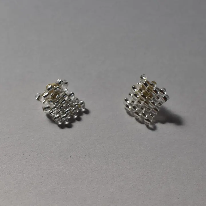液体が空気を包んでできた玉 気体が液体または個体のなかに閉じこまれた状態 ある一定の時間が過ぎると その泡は消失してしまう 液体がおなじ粘度でも温度が高い方が気泡径が大きくなります 環境に左右されながらうごめく 命を宿しているかのような 美しい球体のあつまり その瞬間を覚えておかないと 彼らはいつの間にか過ぎ去ってしまう --- 耳飾りは5サイズあり、使用しているビーズの組み合わせが2種類あります 細かい目(泡A、C)のものと粗い目(泡B、D、E)のもの お好みの印象のものをお選びください material SILVER925(ピアス金具)、ガラスビーズ、フェルト、本革、テグス size 約25x25�o weight 約2.10g *CACICOの商品は全て1点1点制作しているため、個体差があり、商品写真と差がある場合がございます。ご了承の上、ご購入ください。 *金属アレルギーの方はご使用をお控えください *受注生産のため、ご注文確定後1週間〜10日以内に商品を発送いたします