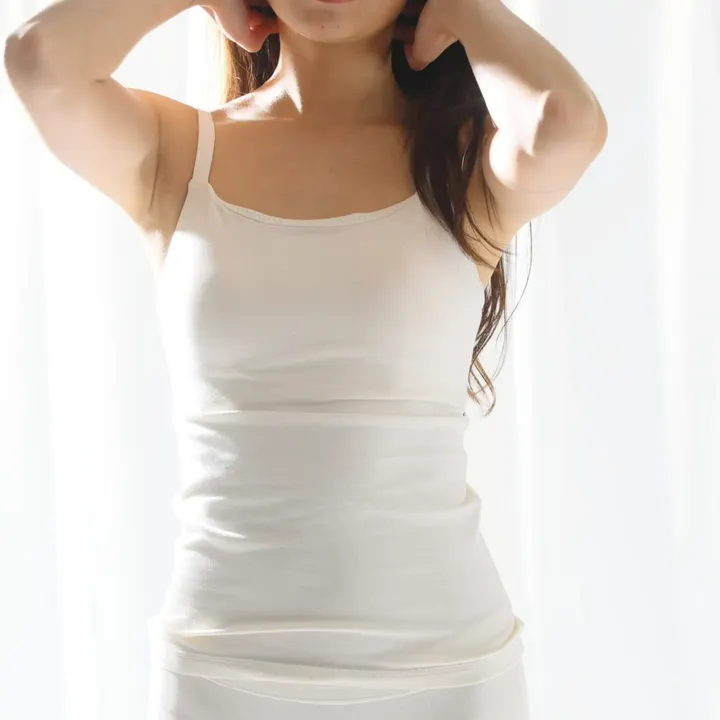 *今回の予約会では、「レディース製品」に関しましては、新商品販売記念として、7営業日の早いお届けがが可能です。 メンズの期間とは異なりますので、ご注意ください。 これ一枚でも綺麗に整ってしまうカップ付きキャミソール。 胸下(アンダー)周りには、ぐるりとパワーネットを挟み込み、バスト周りを優しくホールドアップ!お洋服などの汗じみガード効果などにも配慮した設計にしております。またデコルテが綺麗に見えるようスクエアカットのデザインにしているため、首回りをスッキリ見せられ、様々なお洋服と来合せしても邪魔をしない設計にしております。 ショーツとの上下セット着用で、アンダーウェアとしてだけでなく、楽ちんな部屋義としてもご利用頂けますので、是非お楽しみください♪♪ (その他仕様について) バスト周りをソフトに包む、バストワイヤー無しのキャミソールになります。 カップもアウターなどにひびき難い仕様です。 背中周りは広めのバックスタイルで、アウターからも見えにくい仕様となります。見ごろからストラップまで共通素材となり、アジャスター機能で長さが調整可能です。 お肌への配慮から、出来限り、縫い目が肌に当たらない仕様を施し、身頃・カップの裏側も肌あたりの優しい仕上げにしております。 天然染色100%及びオーガニックコットン100%の原綿を使用していることからこそ、特にお肌への配慮をしております。 また製品自体に、ケミカル素材のネームタグや、薬品使用のネーム印字なども一切施しておりません。 純粋に、自然由来成分から製造された製品の良さをそのままご利用頂けましたら幸いです。 ー無染色(ナチュラル)ー ナチュラルは、天然染色を一切施しておりません。オーガニックコットン100%の優しい風合いも皆さまにそのまま感じて頂きたく、あえて無染色とした製品です。無農薬栽培による天然素材だからこその素材の膨らみ感とお肌への優しい使い心地・快適さをそのまま感じて頂けます。是非ナチュラルもお試しください♪ 【ご注文の際の重要なお知らせ】 バンデージビューティクラブでは、環境配慮のモノ作りを理念としている為、過剰になる生産(在庫も含め)をしておりません。 よって毎月予約期間を設定させて頂き、予約期間終了を経て最終の加工に入らせて頂きます。 そのため、お届けはご注文頂いてから1カ月後を頂戴しております。どうぞご理解いただければ幸いです。
