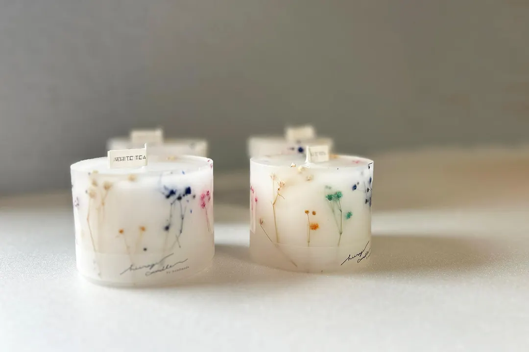 植物性の蝋や、リユースフラワーを使用した 体にも環境にも優しいキャンドルのご提案