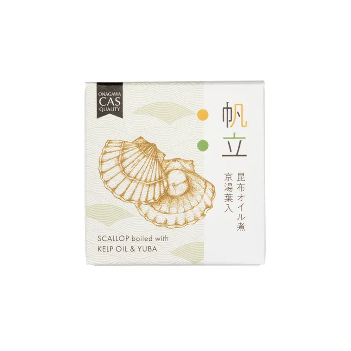 三陸のうまい!をお届けしている株式会社 鮮冷 さんとのコラボレーションで生まれたデリシャス缶詰。 お刺身でいただける宮城県のホタテを贅沢に使用し、北海道の利尻昆布と一緒に煮込んだ逸品です。 昆布とホタテの旨味を吸った京湯葉も、美味しくお召し上がりいただけます。