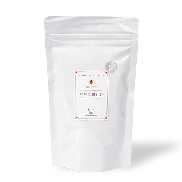 贅沢リッチいちご和紅茶は、静岡産の良質な茶葉を100%使用した和紅茶と摘みたていちごの甘酸っぱい香りをブレンドした贅沢なフレーバードティーです。 ティーバッグ1個をティーカップに入れて熱湯を注ぐと、和紅茶の豊かな風味といちごの甘い香りに癒されてほっこり幸せな気分になれます。 またいちご和紅茶はパンやケーキとの相性が抜群。チョコレートや和菓子にも良く合います。 冬はホットで夏は水出しでお楽しみいただけます。いちごの香りに包まれた優雅なおうち時間をお楽しみください。 白基調のシンプルでかわいいチャック付きスタンドバッグは保存にも便利で、ご自宅用はもちろん大切な方へのギフトにもオススメです。