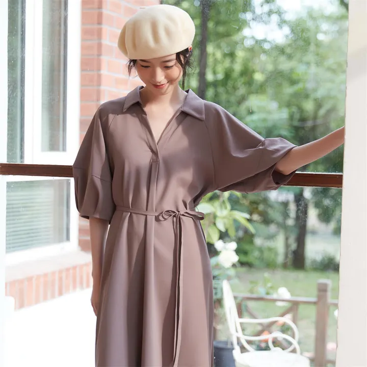 KNSO350フォルムボリュームスリーブワンピースリボンベルト付き MOCHA/M