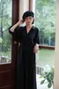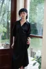 KNSO350フォルムボリュームスリーブワンピースリボンベルト付き BLACK/M