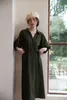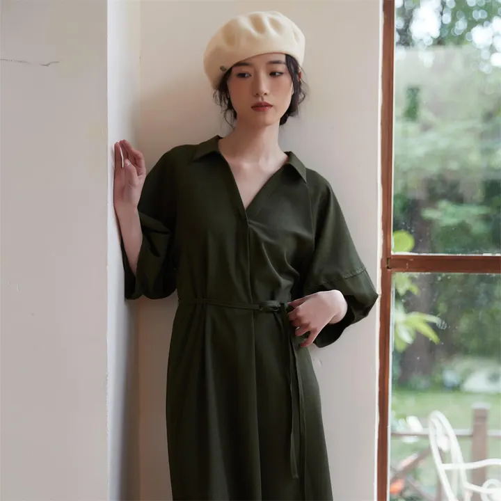 KNSO350フォルムボリュームスリーブワンピースリボンベルト付き OLIVE/M