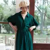 KNSO350フォルムボリュームスリーブワンピースリボンベルト付き GREEN/M