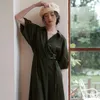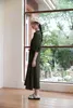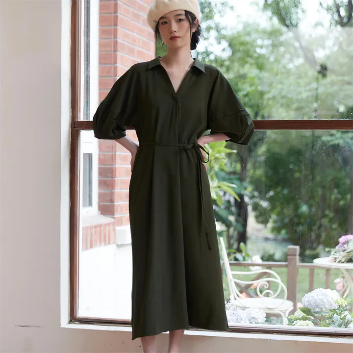 KNSO350フォルムボリュームスリーブワンピースリボンベルト付き OLIVE/L