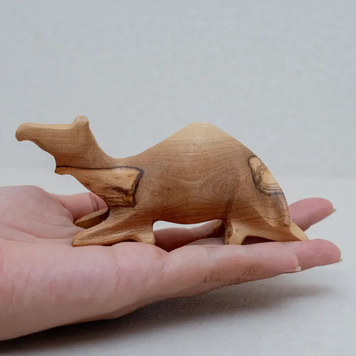 【ペーパーウェイトにも置き物にも】おすわりらくだ(オリーブ材・無塗装・フェアトレード)