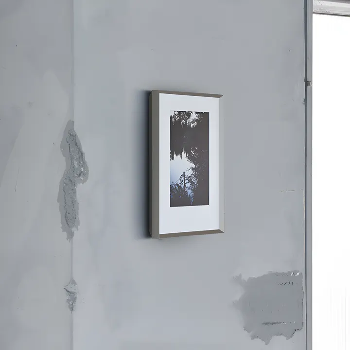 「CUT」と名付けられたこの製品はその名の通り、エッジを切り落として、シャープな印象を携えた額縁です。 シンプルな額縁にあるそれぞれの面がカットされたような形をしています。 このことより、正面から見た時は額による影が作品に落ちず、 額をあまり意識する事なく作品に集中する事が出来ます。 さらに、斜めから見た時は側面が面取り(カット)されているため、 壁面から浮いた様な軽やかな印象と品のある額縁となりました。 「マットシルバー」の表面はショットブラストを採用しマットコーティングを施す事で、 アルミの素材感と高級感を演出しています。 シンプルで、品のあるものを望まれる方には最適な製品です。 2019年グッドデザイン賞受賞、「DFA design for ASIA 2020」受賞