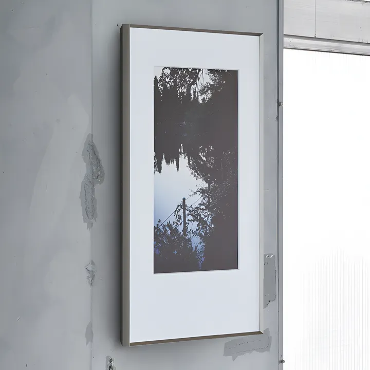 「CUT」と名付けられたこの製品はその名の通り、エッジを切り落として、シャープな印象を携えた額縁です。 シンプルな額縁にあるそれぞれの面がカットされたような形をしています。 このことより、正面から見た時は額による影が作品に落ちず、 額をあまり意識する事なく作品に集中する事が出来ます。 さらに、斜めから見た時は側面が面取り(カット)されているため、 壁面から浮いた様な軽やかな印象と品のある額縁となりました。 「マットシルバー」の表面はショットブラストを採用しマットコーティングを施す事で、 アルミの素材感と高級感を演出しています。 シンプルで、品のあるものを望まれる方には最適な製品です。 2019年グッドデザイン賞受賞、「DFA design for ASIA 2020」受賞