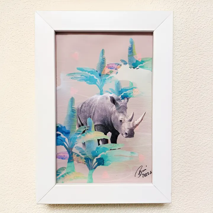 ワイルドアートフレーム(はがきサイズ) Holiday Rhino