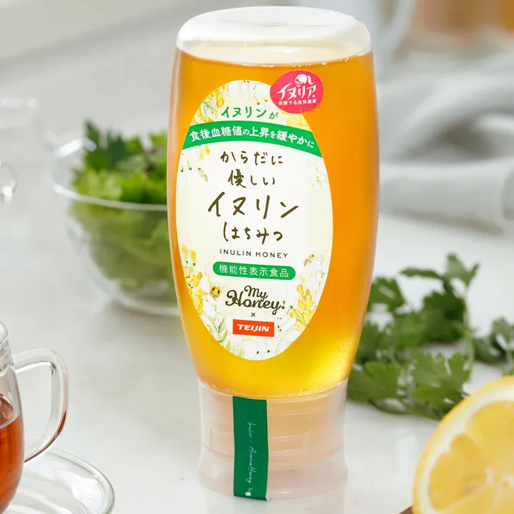 機能性表⽰⾷品取得! 健康的なはちみつをお届けしたい。 その想いが、MYHONEY定番の「アカシアはちみつ」と「イヌリン」が出会うことで実現しました。 【⾷後⾎糖値の上昇を緩やかに】 お⾷事前にティースプーン1杯お召し上がりいただくことで、⾷後⾎糖値の上昇を緩やかにしてくれます。  ✓健康意識の⾼い⽅に  ✓⽢いものがお好きな⽅  ✓お砂糖が気になる⽅ 【⾷物繊維たっぷり】 1⽇摂取⽬安量(20g)で約1/3⽇分の⾷物繊維がとれます。 ⾷物繊維たっぷりで、お腹にも嬉しいイヌリンはちみつです。 はちみつの中に含まれるオリゴ糖やグルコン酸は、善玉菌の増殖をサポートします。 そのため、イヌリンとはちみつを組み合わせることで、より効果的に腸内環境を改善することが可能と考えられます。 また、お料理などの際のお砂糖をイヌリンはちみつに置き換えてご使用いただくことで甘みやコクをUPさせます。 一般社団法人日本マタニティフード協会のマタニティフード認定を取得! マタニティフード認定は、妊産婦の方々が安心して食品を選べるよう、避けるべき食品や成分が含まれていないことを示すものです。 妊娠中や授乳中のデリケートな時期にも、安心してお召し上がりいただける「からだに優しいアカシアはちみつ」を、ぜひお試しください。 ※ 認定シールをご希望の場合は、お申し込み時にその旨をご記載ください。