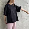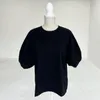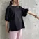 【日本製】コットンポンチ_パフスリーブ半袖_カットソーブラウス ブラック
