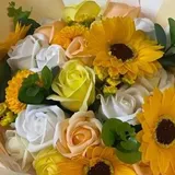 ※プレゼントに最適なソープフラワーの花束です。ほのかに石鹸の香りがする、石鹸素材から作られた造花なので、生花に比べて、長く鑑賞が楽しめます。
